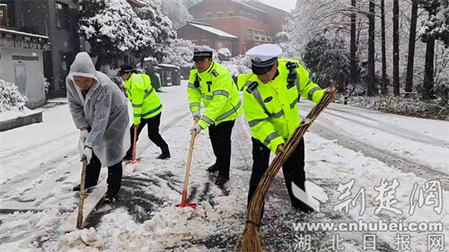 位于丹江口市道沟林区C区市政府,奚家店派出所民警协同交通部门人员,冒雨雪天为过往车辆“请安”。我的车在 cYoupin Seki 村的路上陷在雪里了。朱锋副队长带领辅警和热心群众高喊:“一、二、三,推!”他们帮助车辆摆脱困境,并迅速协调喷洒融雪剂,将积雪融化。竹溪县民辅警队转型为“全民治安部队”。他们将帮助车主在桃源村五凤山路安装防滑链并清除路面积雪。全溪市杨家埠路,他们正忙着清除落石、砍伐树木,用辛苦的劳动开辟出一条“安全通道”。武当山风景区,大雪让古老的建筑变成了银装素裹,游客寸步难行。 “雪很美,但别掉下来!”警察说走开冰人谭云禄伸出援助之手,帮助玉济桥的香客。面对大家的关心,莆田香客团表示感谢:“谢谢你们的辛苦!”